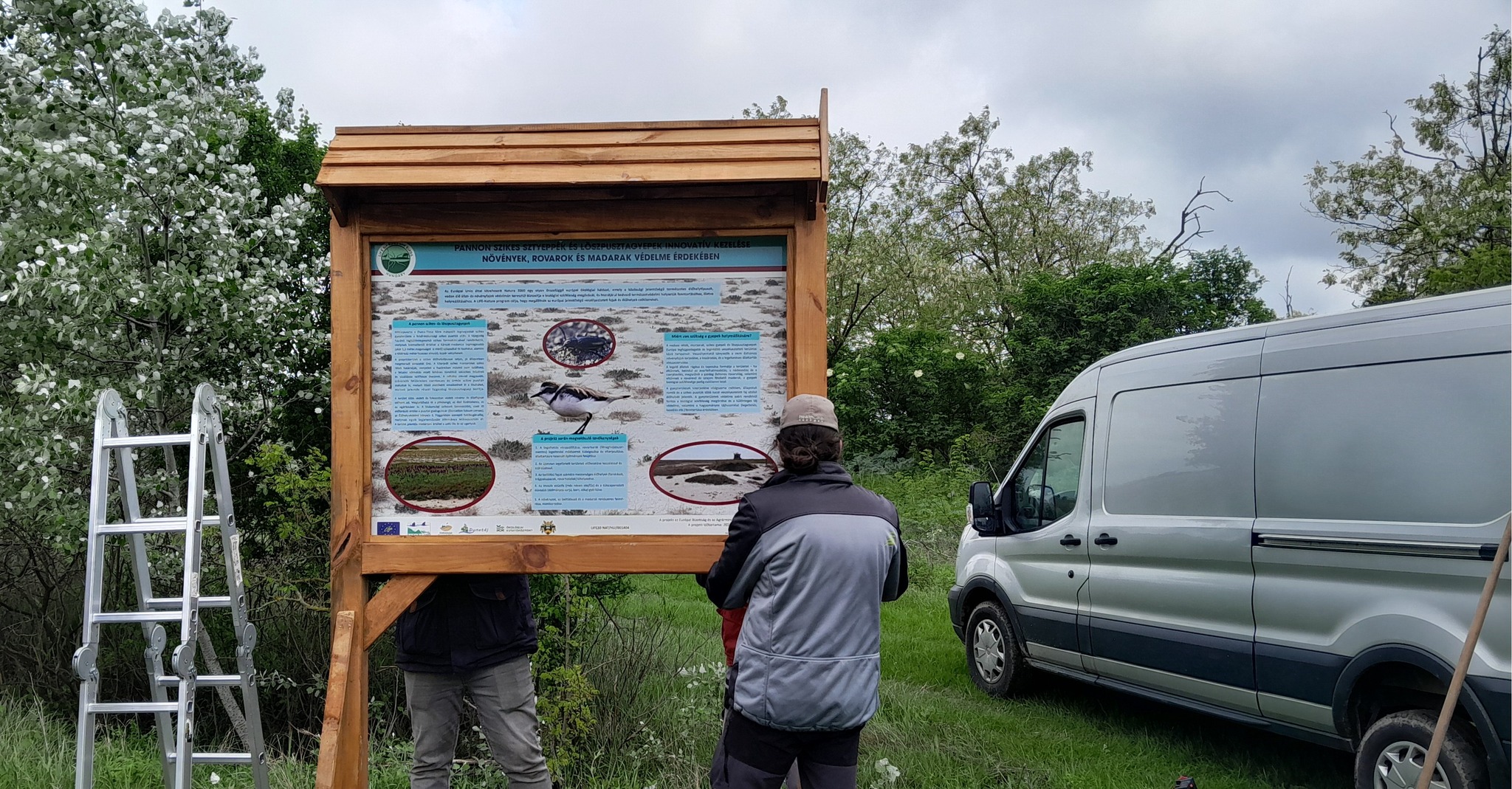 We have installed information boards to demonstrate the project activities and the natural values of the area. One of the four boards is located in the courtyard of the busy Pilgrims’ House in Harta, where locals and visitors from further afield can learn about our activities. The other three have been installed on the edge of the project area, and one of them is along a nature trail that will soon be built.